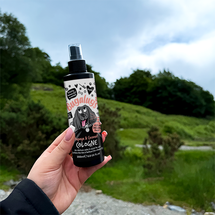 Spritz and go, with Bugalugs best-selling Papaya & Coconut Dog Cologne!