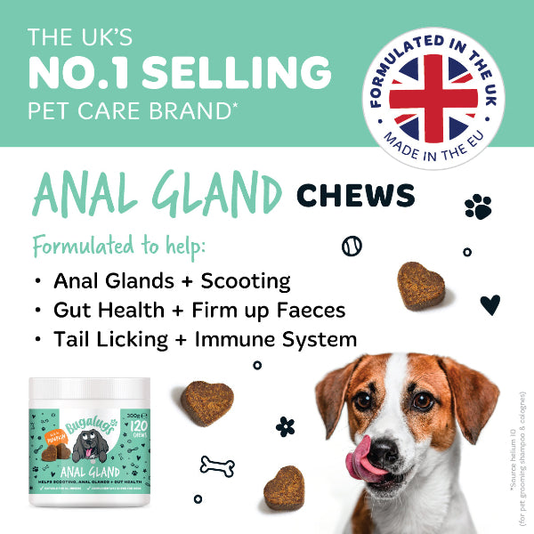 Bugalugs Anal Gland Chews – The tasty way to support your dog’s gut health, digestion, and anal gland function.
