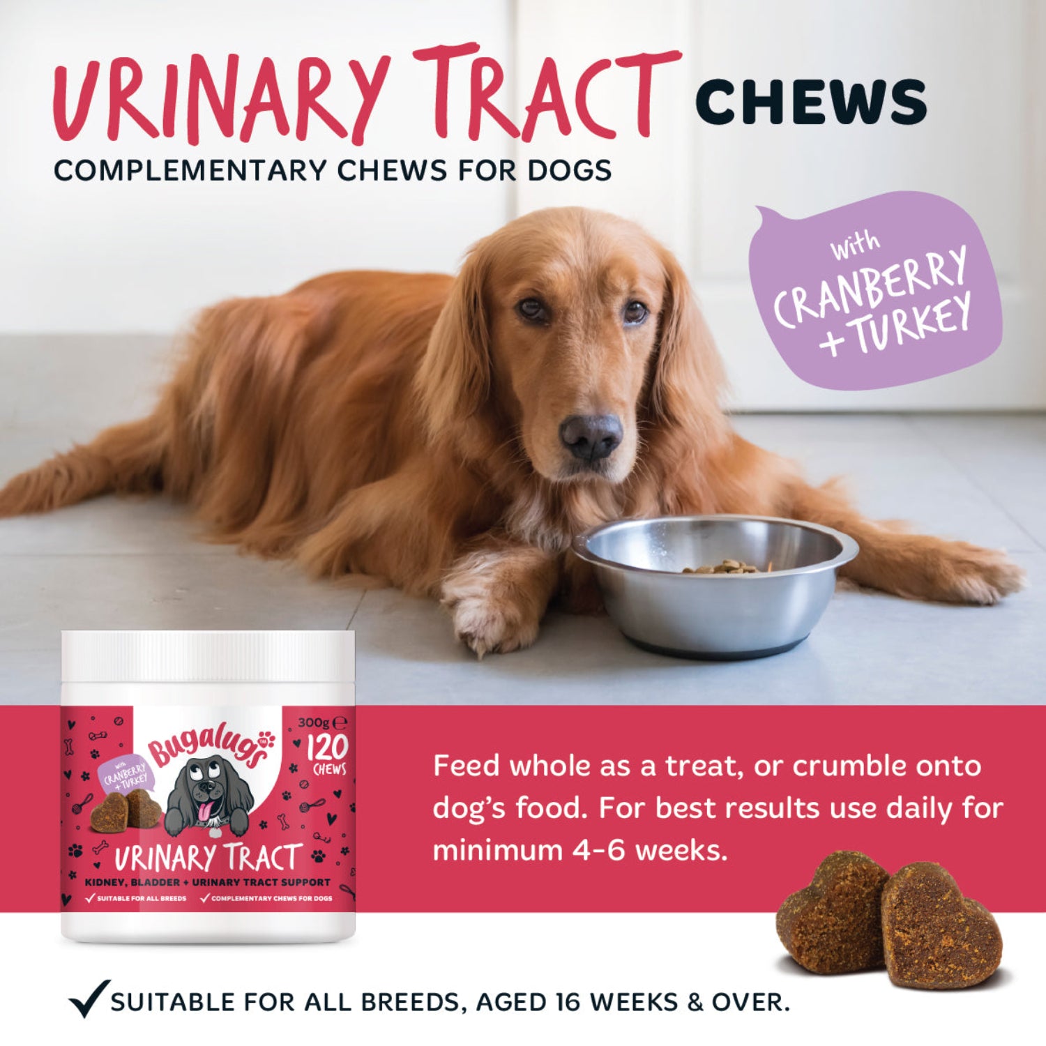 Bugalugs Urinary Tract Chews – Tasty, soft support for urinary and bladder health.